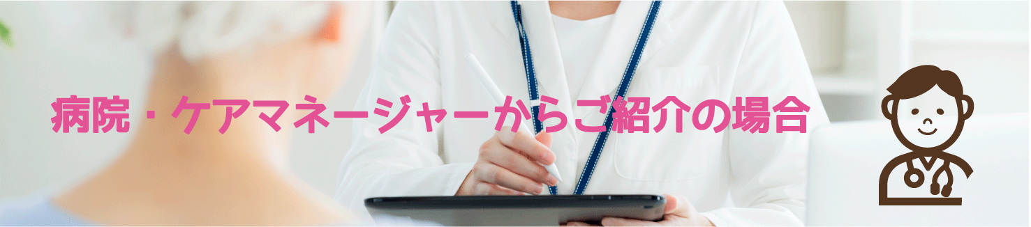 主治医の先生の診察を受けていただき、訪問看護が必要か判断を行っていただいた上で、かかりつけ病院やケアマネージャーさんから訪問看護のご相談いただいたり、はる訪問看護ステーションをご紹介を頂きます。